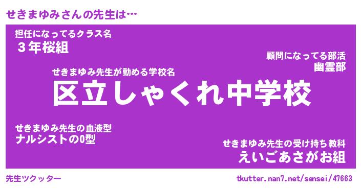 | 伝説のあだ名 | 『封印されしスナイパーせきまゆみ』 |