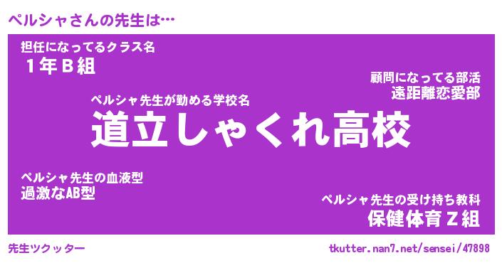 | ヘコむあだ名 | 『ペルっふぃ~』『つくし』『ペルを』 |