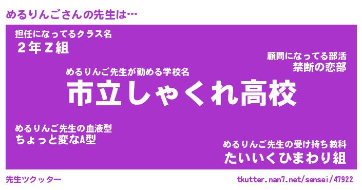| 伝説のあだ名 | 『伝説のスナイパーめるりんご』 |