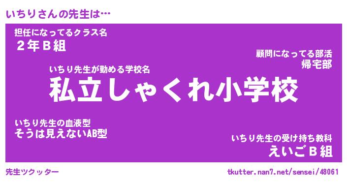 | ポケモン風あだ名 | 『イチチュウ』『イチリダネ』 |