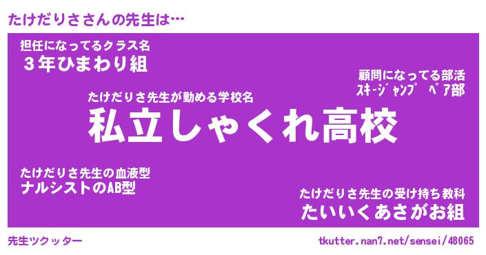 | ファンタジー風あだ名 | 『タケフェル』『エターナルタケダリサー』 |