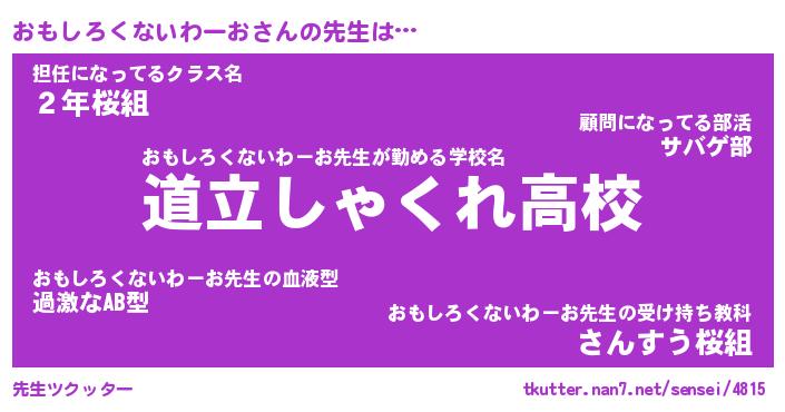 | 胡散臭い通販商品みたいなあだ名 | 『モテモテ間違いなし霊験あらたかなお札…その名も「おもしろくないわーお」』 |