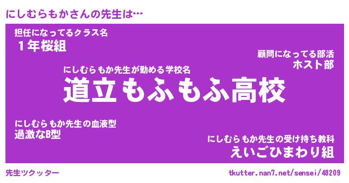 恥ずかしいあだ名 | 『プリティーにしむらもか』『にしっちょ』 |