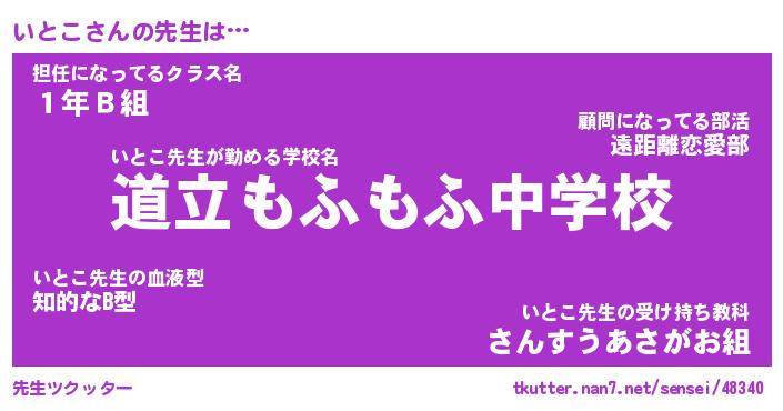 | ヘコむあだ名 | 『いとにゅー』『つくし』『いとお』 |