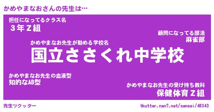 | ヘコむあだ名 | 『かめもー』『レバニラ』『かめを』 |