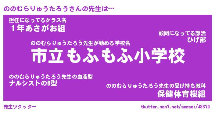 | 男性向けラノベタイトル風あだ名 | 『ののむらりゅうたろうの憂鬱』 |