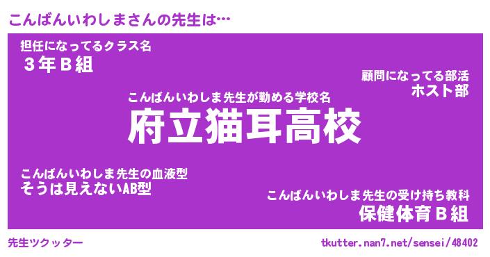 | 胡散臭い通販商品みたいなあだ名 | 『億万長者になれるブレスレット…その名も「こんばんいわしま」』 |