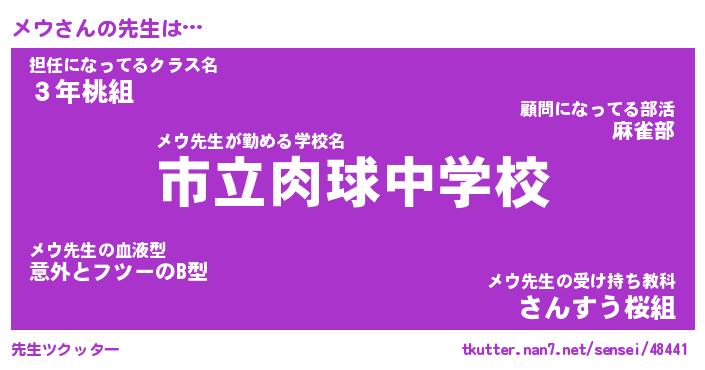 | ヘコむあだ名 | 『メウふぇ~』『牛乳』『メウお』 |