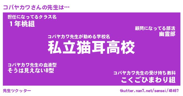 | ポケモン風あだ名 | 『コバチュウ』『コバヤダネ』 |