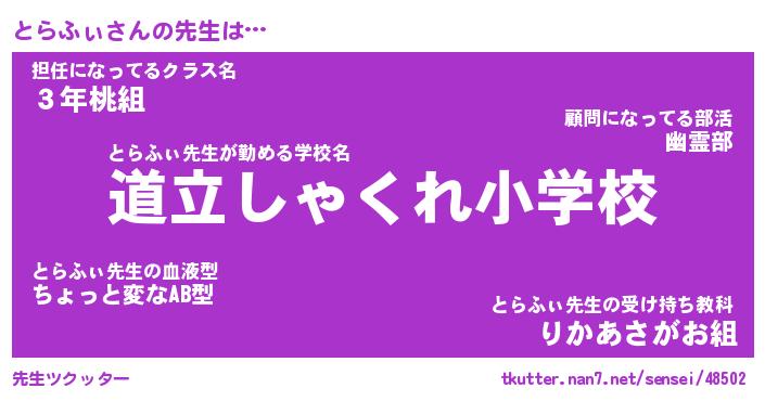 | 意味不明あだ名 | 『ペロリンとらふぃ』『永久保存とらふぃ』 |