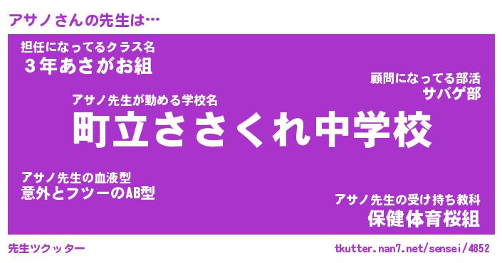 | ポケモン風あだ名 | 『アサチュウ』『アサノダネ』 |