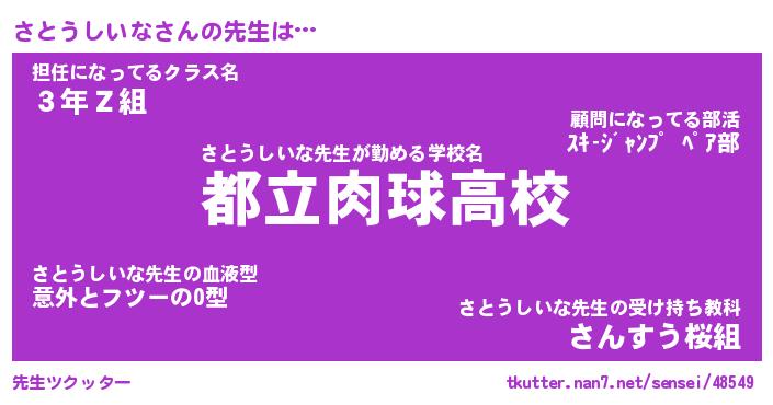 | 胡散臭い通販商品みたいなあだ名 | 『モテモテ間違いなし水晶球…その名も「さとうしいな」』 |
