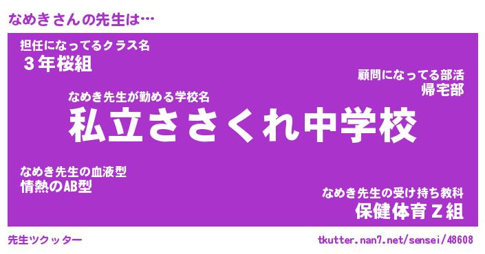 | ポケモン風あだ名 | 『ナメチュウ』『ナメキダネ』 |