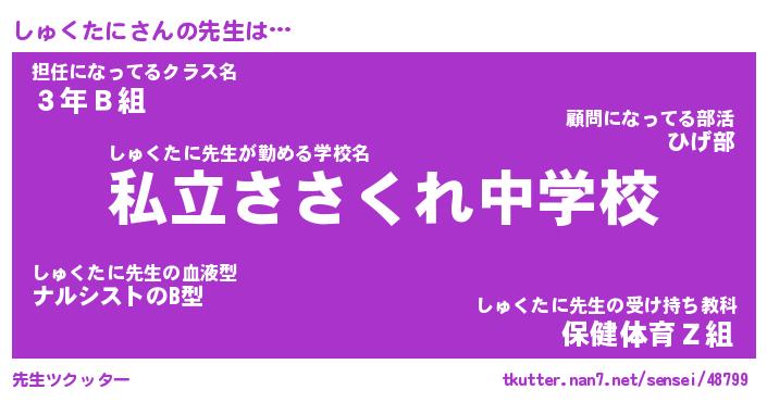 | ヒーロー風カッコイイあだ名 | 『スーパーシュクタニ』『魔戒騎士シュ』 |