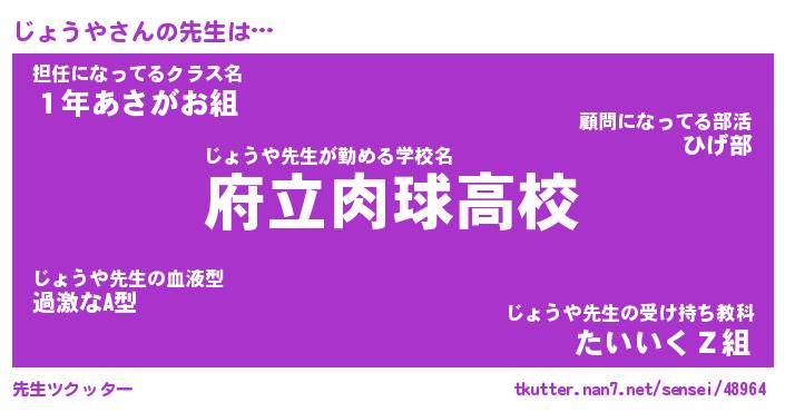 | 意味不明あだ名 | 『ペロリンじょうや』『永久保存じょうや』 |