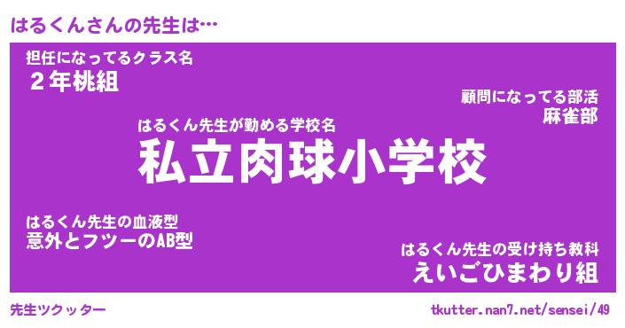 | 意味不明あだ名 | 『ペロリンはるくん』『永久保存はるくん』 |
