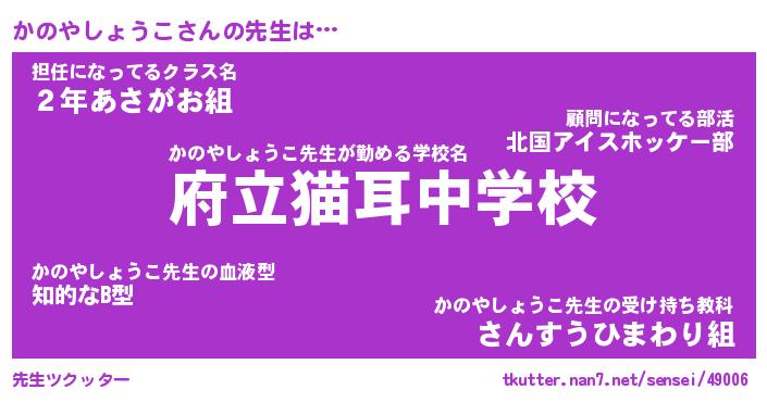 | ヘコむあだ名 | 『かのにー』『豆乳』『かのっ子』 |