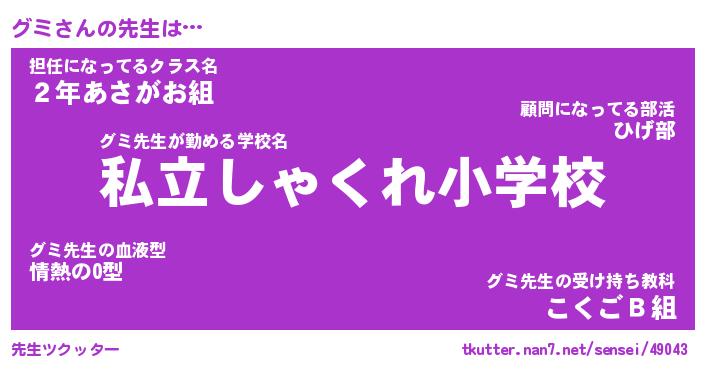 | ヒーロー風カッコイイあだ名 | 『スーパーグミ』『ウルトラグミマン』 |