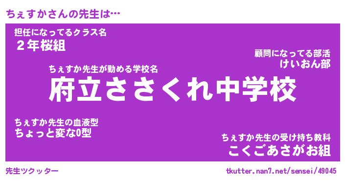 | 伝説のあだ名 | 『封印されしスナイパーちぇすか』 |