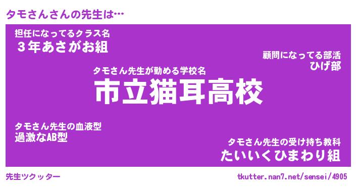 | ファンタジー風あだ名 | 『タモフェル』『エターナルタモサンー』 |