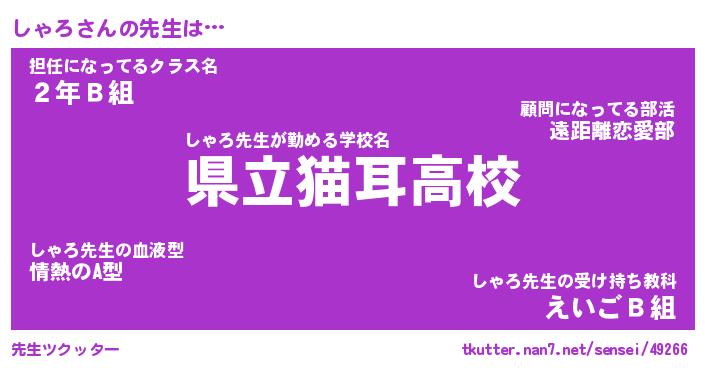 | 女子向けラノベタイトル風あだ名 | 『しゃろ姫と円卓の騎士』『しゃろ恋絵巻』 |
