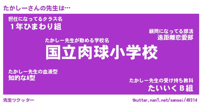 | 意味不明あだ名 | 『ペロリンたかしー』『永久保存たかしー』 |