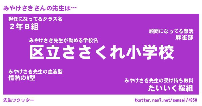 | ファンタジー風あだ名 | 『ミヤフェル』『エターナルミヤケサキー』 |