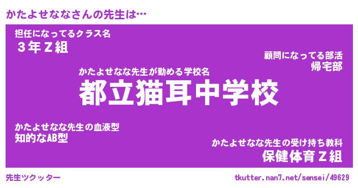 | ヒーロー風カッコイイあだ名 | 『スーパーカタヨセナナ』『天弓騎士カタ』 |