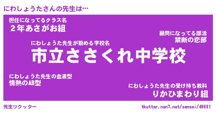 | ヒーロー風カッコイイあだ名 | 『スーパーニワショウタ』『暗黒騎士ニワ』 |