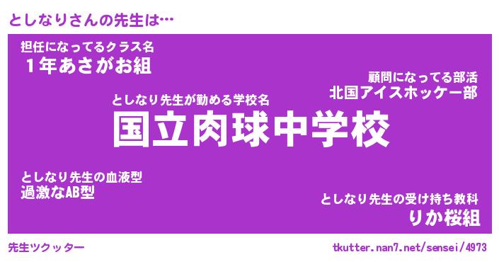 | ファンタジー風あだ名 | 『トシフェル』『エターナルトシナリー』 |
