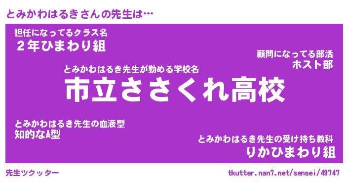 | ヘコむあだ名 | 『とみもー』『なまこ酢』『とみを』 |