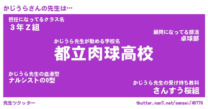 | 意味不明あだ名 | 『ペロリンかじうら』『永久保存かじうら』 |