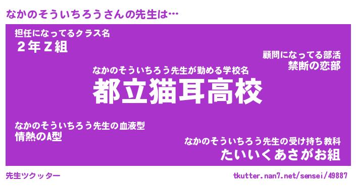 | 男性向けラノベタイトル風あだ名 | 『なかのそういちろうの憂鬱』 |