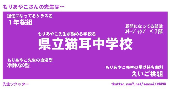 | ヘコむあだ名 | 『もりにー』『牛乳』『もりぷりん』 |