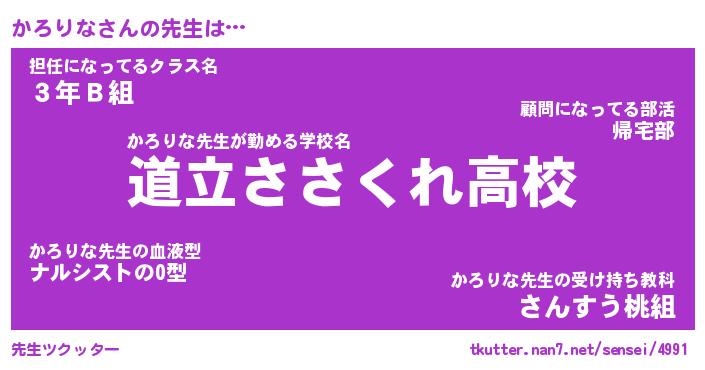 | 意味不明あだ名 | 『ペロリンかろりな』『永久保存かろりな』 |
