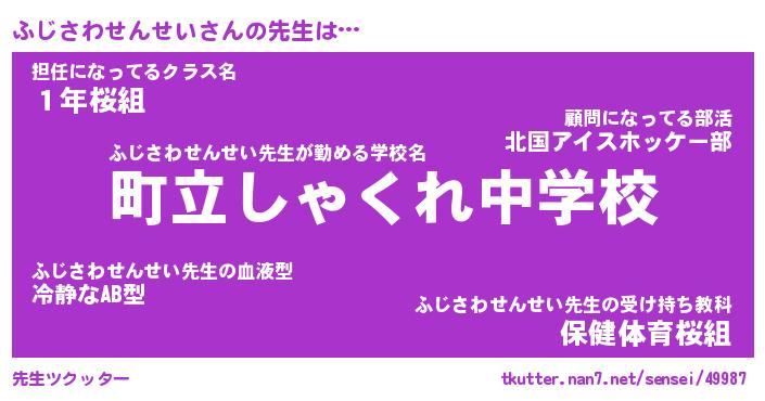 | 伝説のあだ名 | 『封印されしスナイパーふじさわせんせい』 |