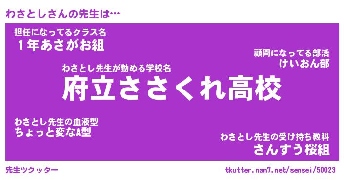 | 意味不明あだ名 | 『ペロリンわさとし』『永久保存わさとし』 |