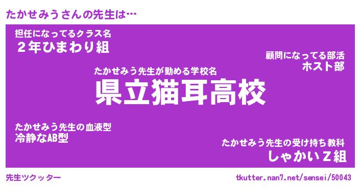 | 肩書あだ名 | 『たかせみう社長』『たかせみう総理大臣』 |