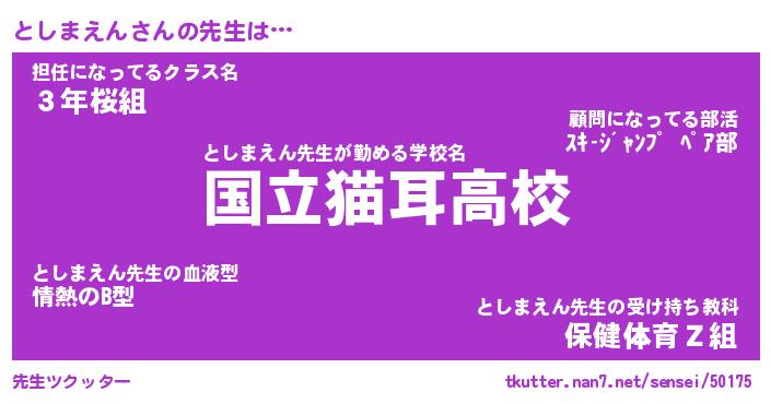 | ファンタジー風あだ名 | 『トシフェル』『エターナルトシマエンー』 |