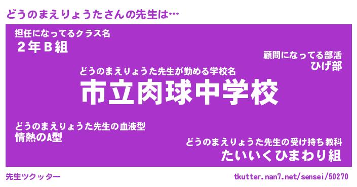 | 胡散臭い通販商品みたいなあだ名 | 『必ず成功するブレスレット…その名も「どうのまえりょうた」』 |