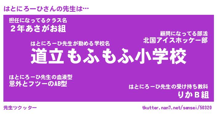 | ヘコむあだ名 | 『はとにゅー』『なまこ酢』『はとお』 |