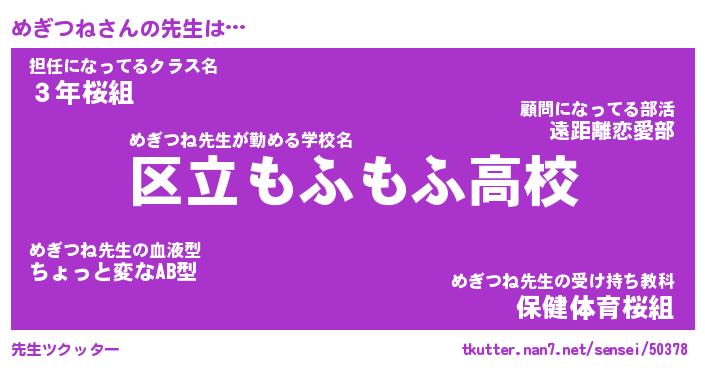 | 意味不明あだ名 | 『ペロリンめぎつね』『永久保存めぎつね』 |