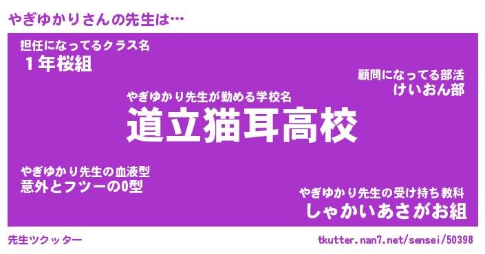 | 恥ずかしいあだ名 | 『プリティーやぎゆかり』『やぎっちょ』 |