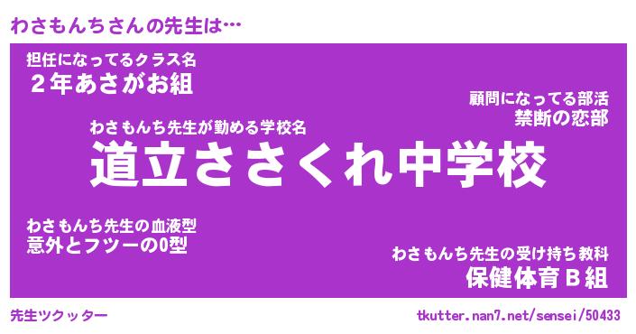 | ヒーロー風カッコイイあだ名 | 『スーパーワサモンチ』『銀牙騎士ワサ』 |