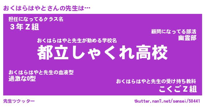 | 胡散臭い通販商品みたいなあだ名 | 『モテモテ間違いなし霊験あらたかなお札…その名も「おくはらはやと」』 |