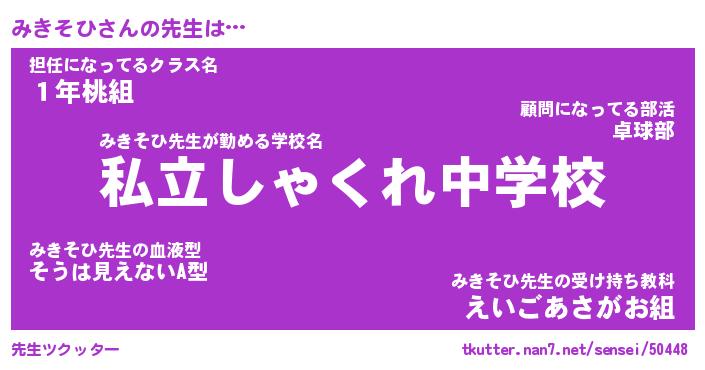 | 伝説のあだ名 | 『伝説のスナイパーみきそひ』 |