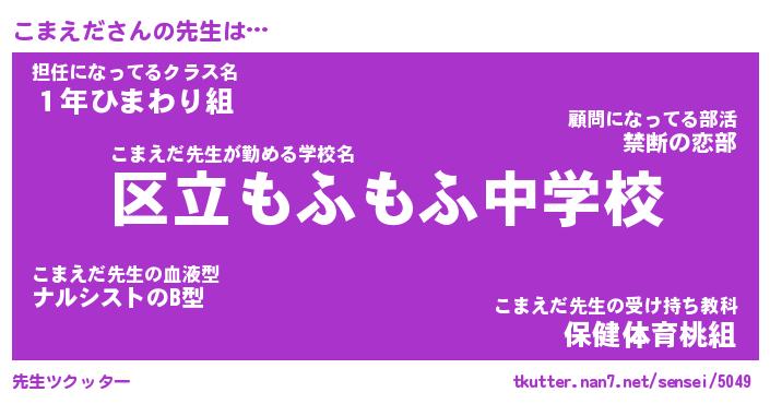 | 意味不明あだ名 | 『ペロリンこまえだ』『永久保存こまえだ』 |