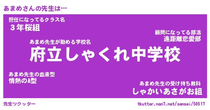 | ヒーロー風カッコイイあだ名 | 『スーパーアマメ』『ウルトラあまめマン』 |