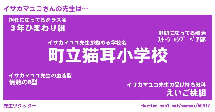 | 肩書あだ名 | 『イサカマユコ社長』『イサカマユコ助手』 |