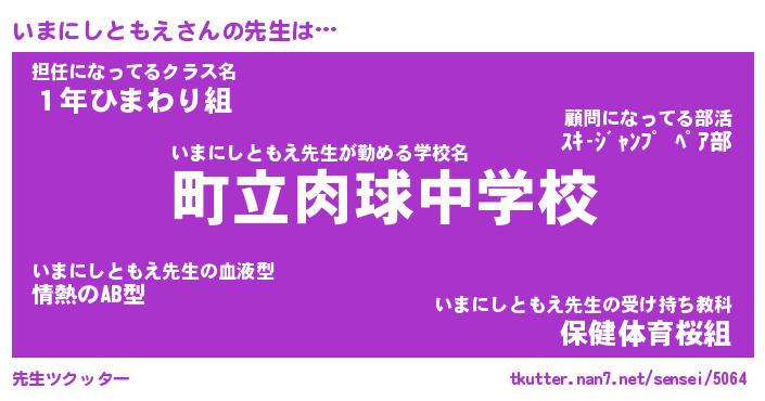 | ヘコむあだ名 | 『いまふぇ~』『牛乳』『いまっちょ』 |